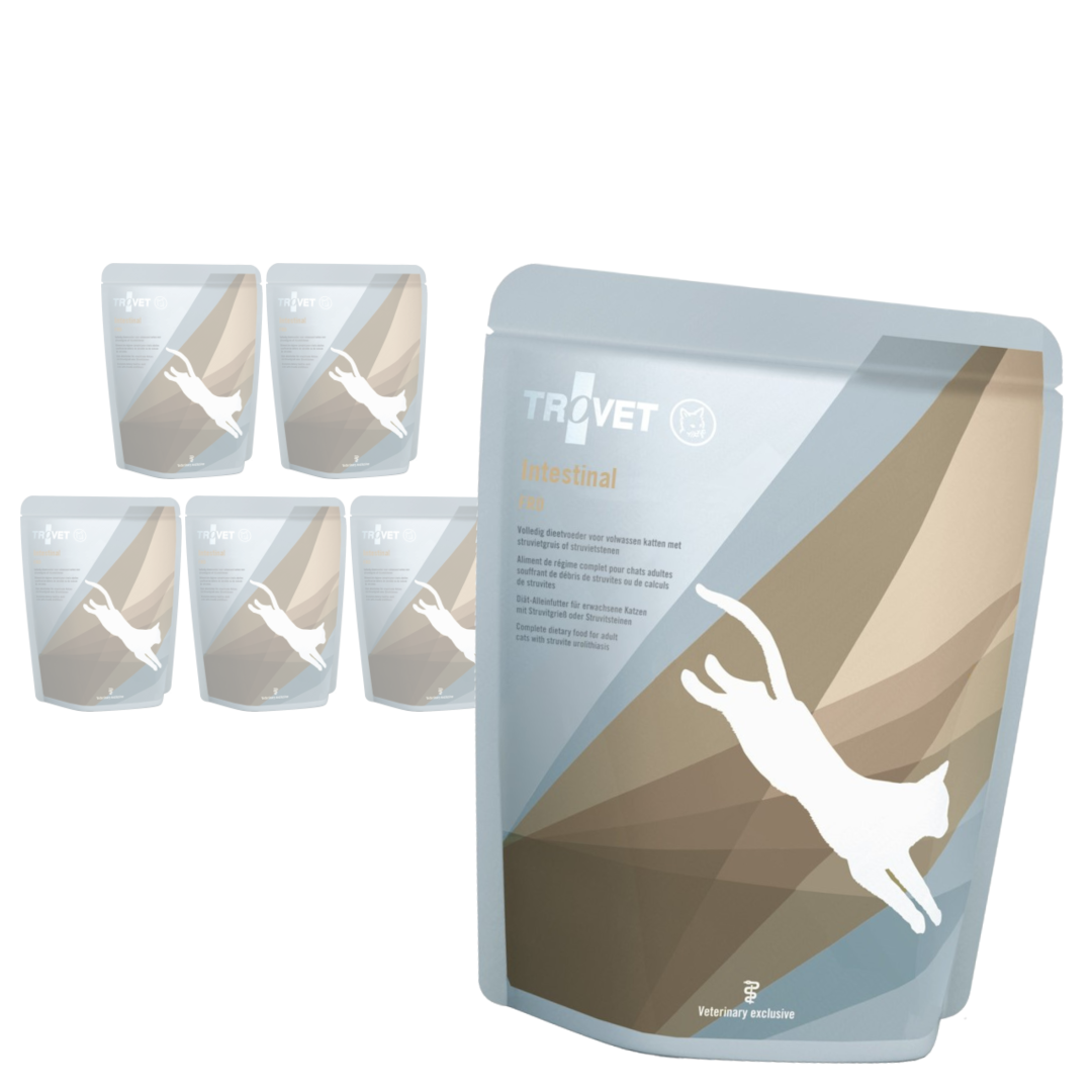 Intestinal to kompletna karma dietetyczna dla kotów, wspomagająca przewód pokarmowy. Zastosowanie ryżu jako źródła węglowodanów sprawia, że karma ta jest wysoce strawna, a dodatek zarówno fermentujących, jak i niefermentujących włókien sprzyja zdrowemu przewodowi pokarmowemu.