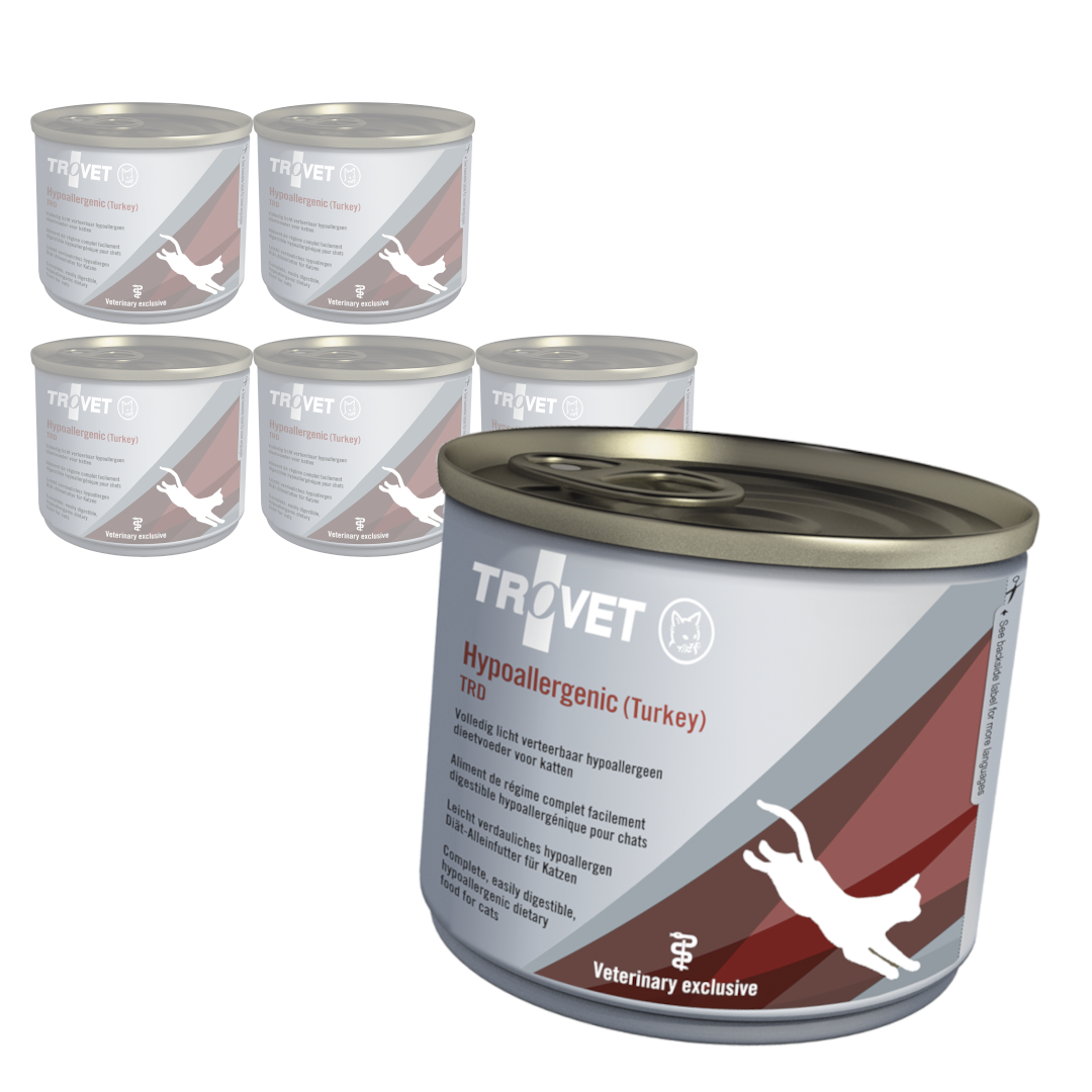 Stosowanie: Zalecany czas stosowania hipoalergicznej karmy TROVET TRD (z indykiem) to 3-8 tygodni - po tym czasie, gdy objawy nietolerancji/nadwrażliwości pokarmowej ustąpią, można nadal podawać kotu karmę Trovet TRD jako pełnowartościowy pokarm.
