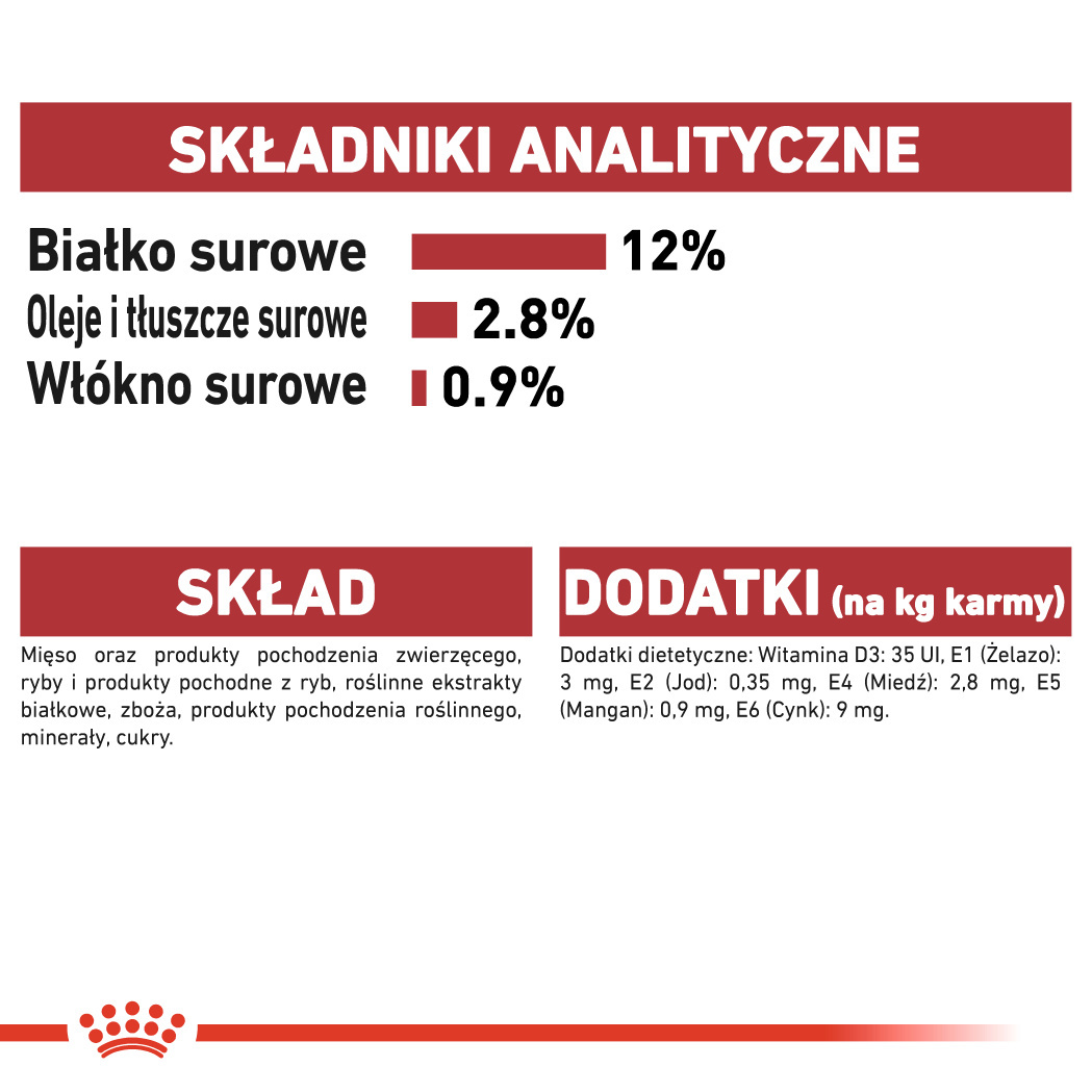 Karma ROYAL CANIN® Instinctive w sosie charakteryzuje się optymalnym poziomem tłuszczu, pokrywającym zapotrzebowanie na energię.
