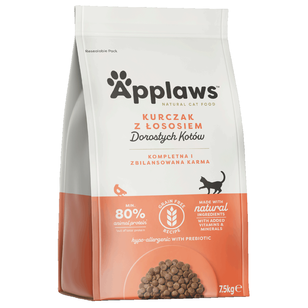 Applaws sucha karma bezzbożowa z kurczakiem i łososiem dla kota to wyjątkowe połączenie najwyższej jakości składników, stworzone z myślą o naturalnych potrzebach Twojego pupila.