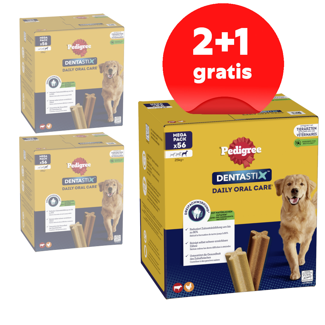 ZESTAW SKŁADA SIĘ Z 3 OPAKOWAŃ PRZYSMAKÓW DENTASTIX (2+1 GRATIS - 3x56sztuk)