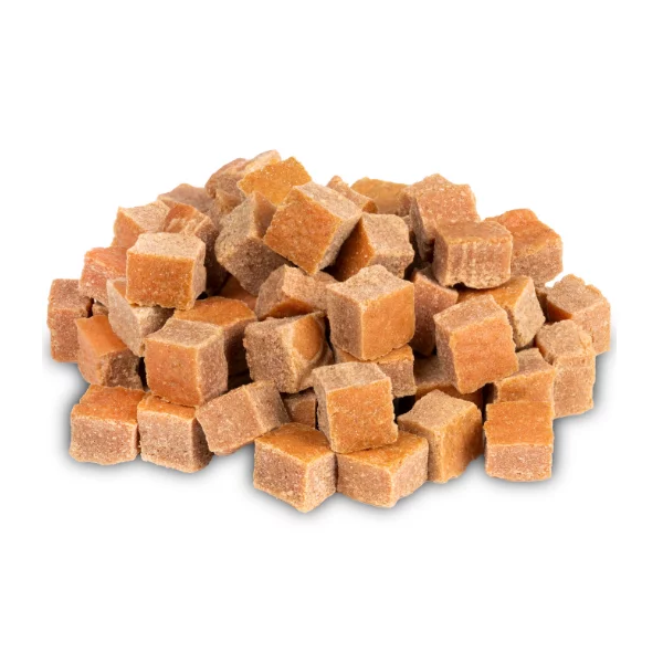 Kostki treserki – przysmaki z dużą zawartością mięsa, ponad 80%, najlepiej sprawdzą się podczas nauki i treningów w celu zwiększenia koncentracji i zainteresowania psa. Specjalne przekąski zachęcają psa do wykonywania zadań i stanowią świetną nagrodę za każde poprawnie wykonane polecenie.