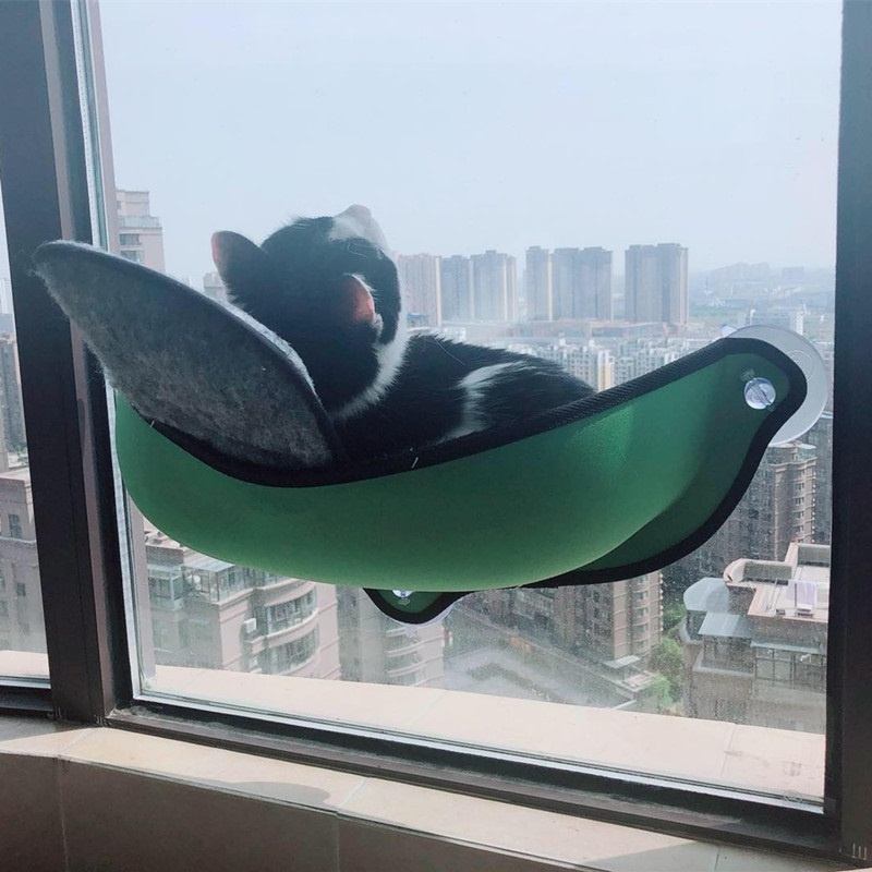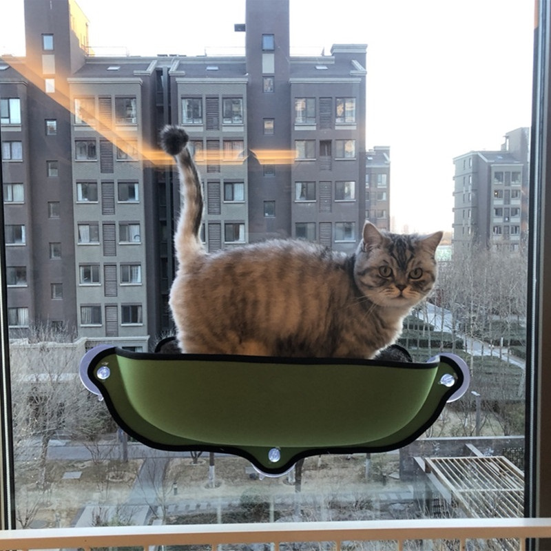 Mocne wytrzymałe legowisko dla kota na okno na przyssawkach łóżko hamak dla zwierzaka do 13kg kolor ZIELONY