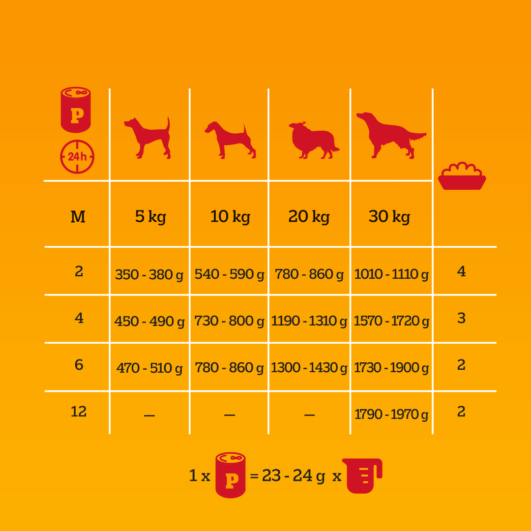 100 g karmy mokrej można zastąpić 23-24 g karmy suchej PEDIGREE®.