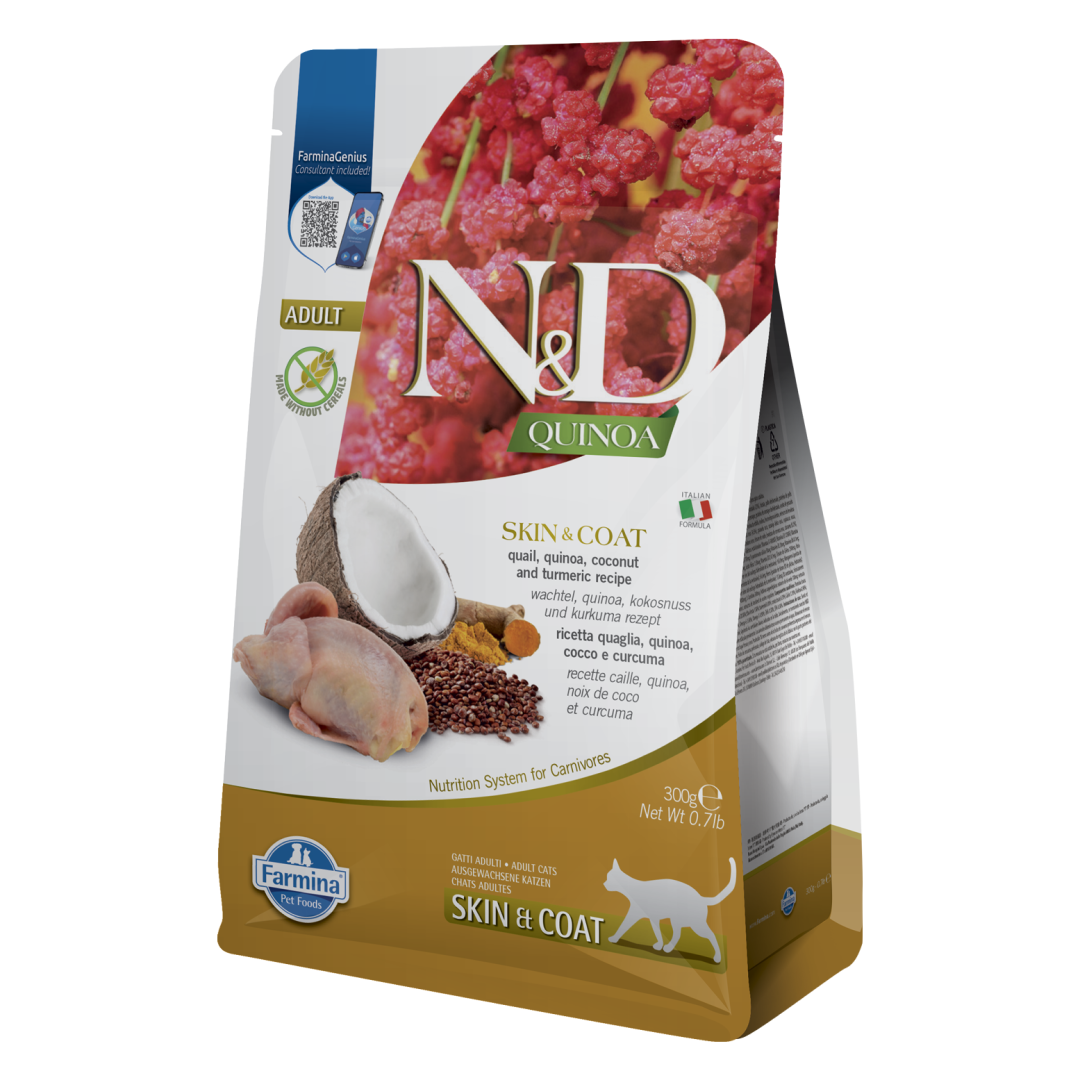 Farmina N&D Cat Quinoa Skin & Coat Quail 300g Sucha Karma z Przepiórką Dla Kota Zdrowa Skóra i Sierść