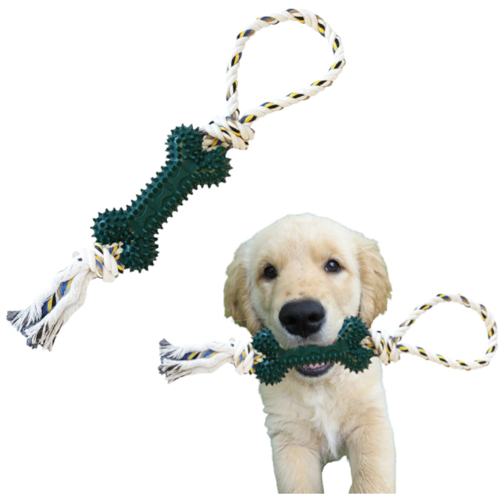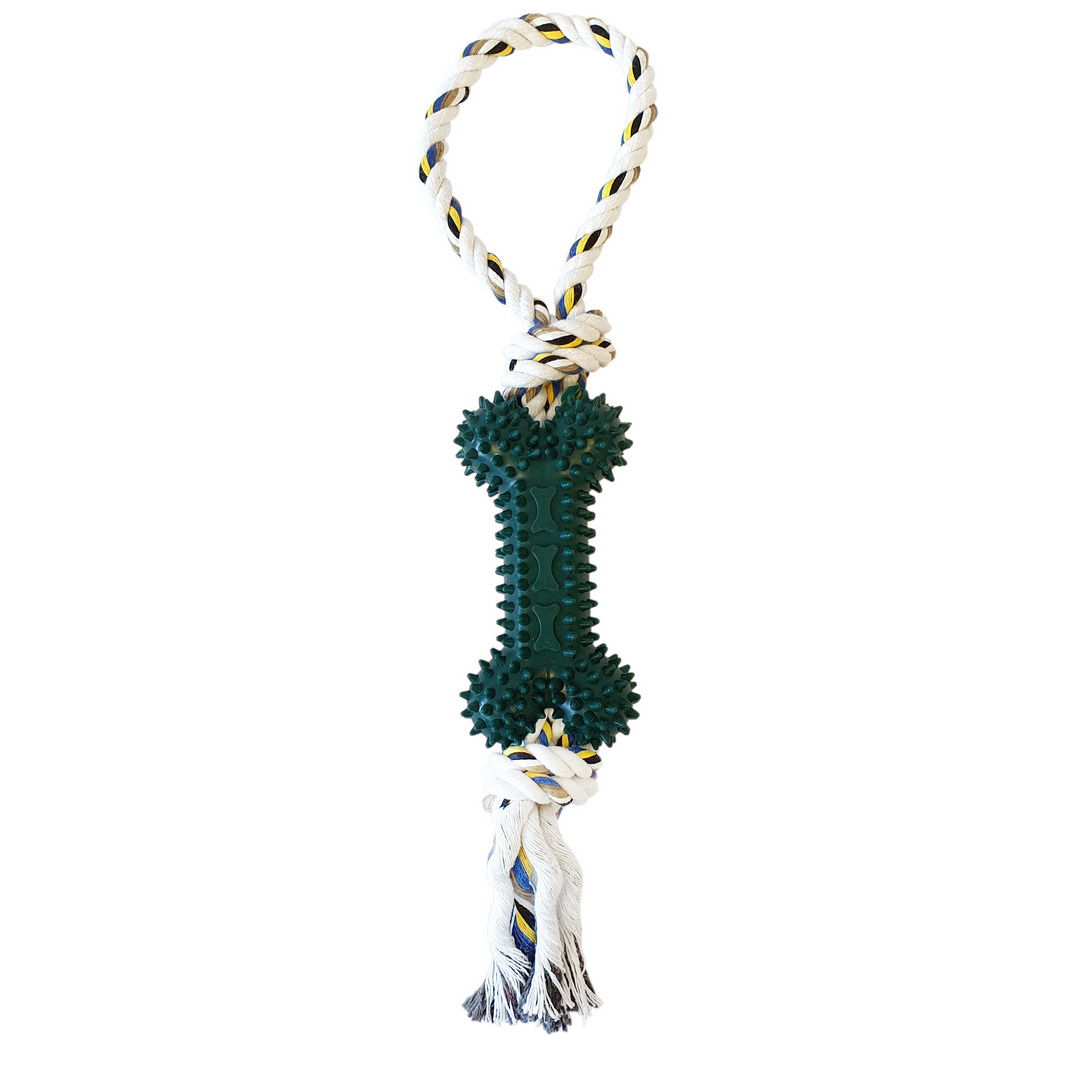 Zabawka Dla Psa Szarpak Sznur z Gryzakiem 35cm Kość Zielona